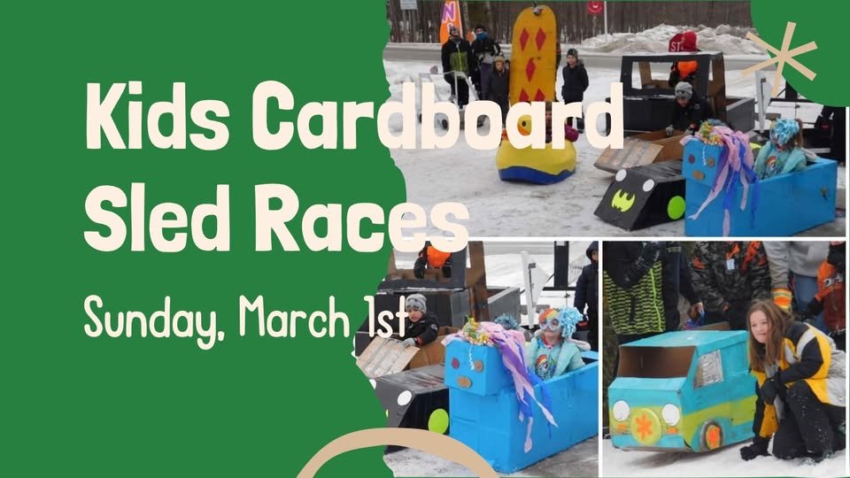 Kids will have a chance to bring a cardboard contraption of their own design made soley from cardboard, duct tape and paint to compete in the cardboard sled race. Prizes awarded for farthest slide and best decorated sled.